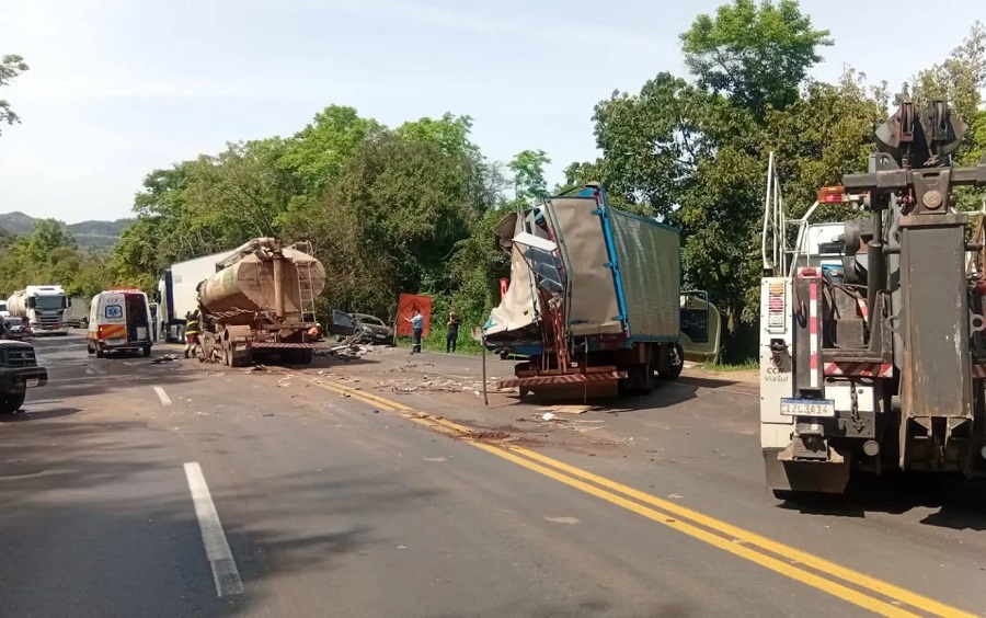 Acidente entre seis veículos deixa um morto e bloqueia totalmente a BR-386, no RS